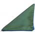 Light green silk pocket square with royal blue dots and royal blue piping.